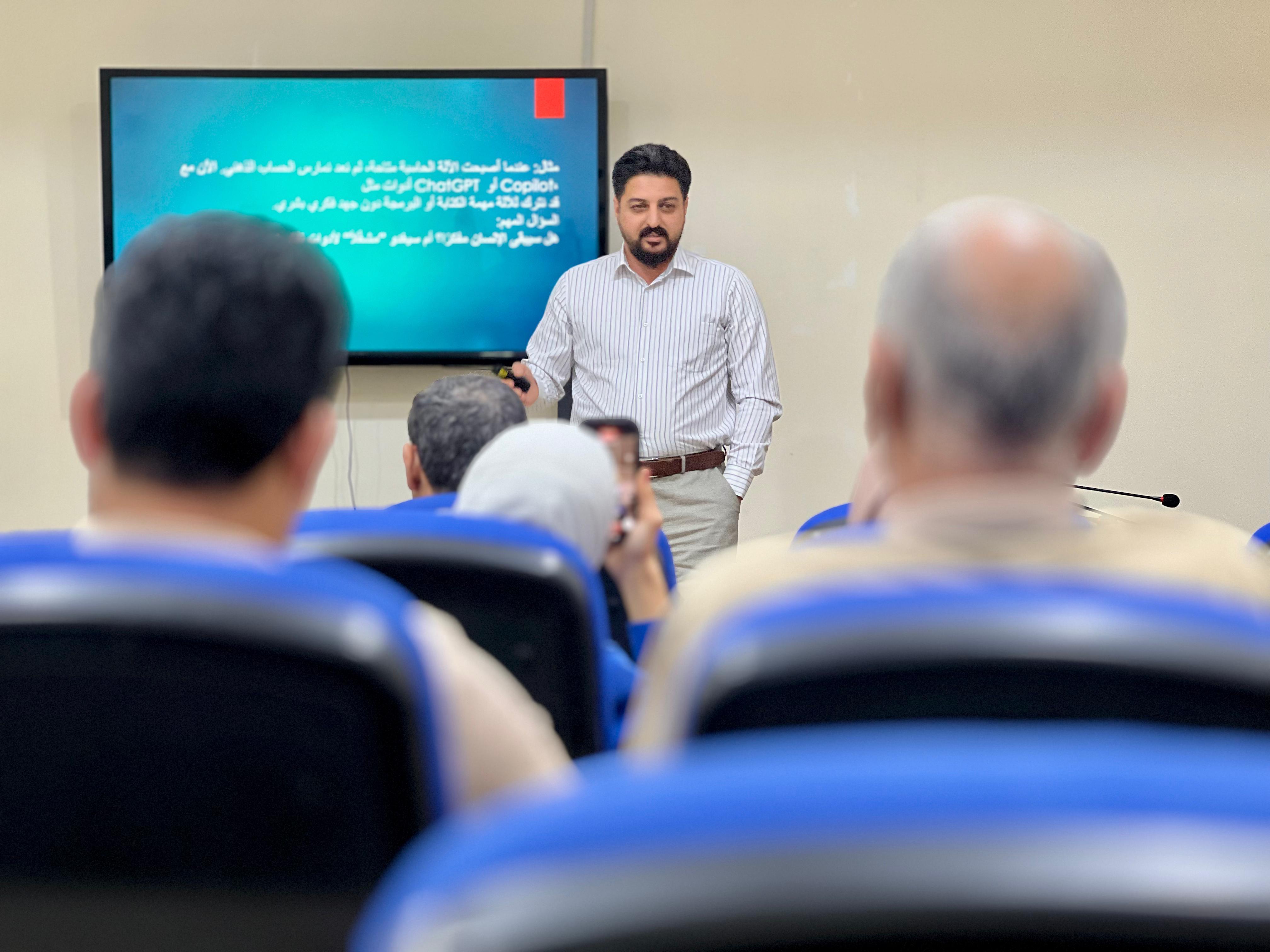 كما تناول المدرّس المساعد علي سمير الجوانب العلمية والاجتماعية لأداة الذكاء الاصطناعيChatGPT وناقش كيف يمكن الاستفادة منها في التعليم،البحث العلمي، وتطوير المهارات التواصلية، بالإضافة إلى التحديات المرتبطة بالاعتماد المفرط عليها.