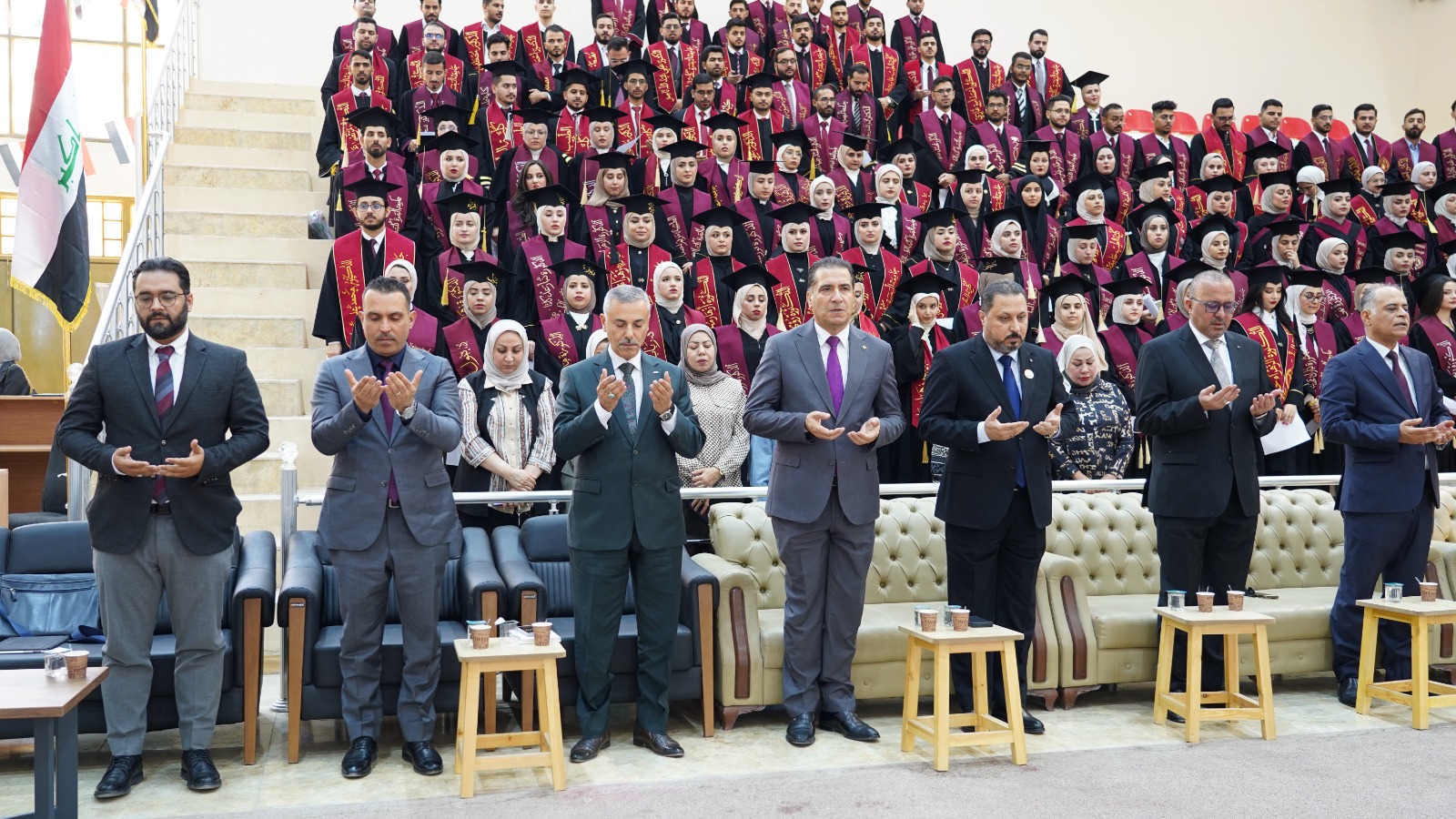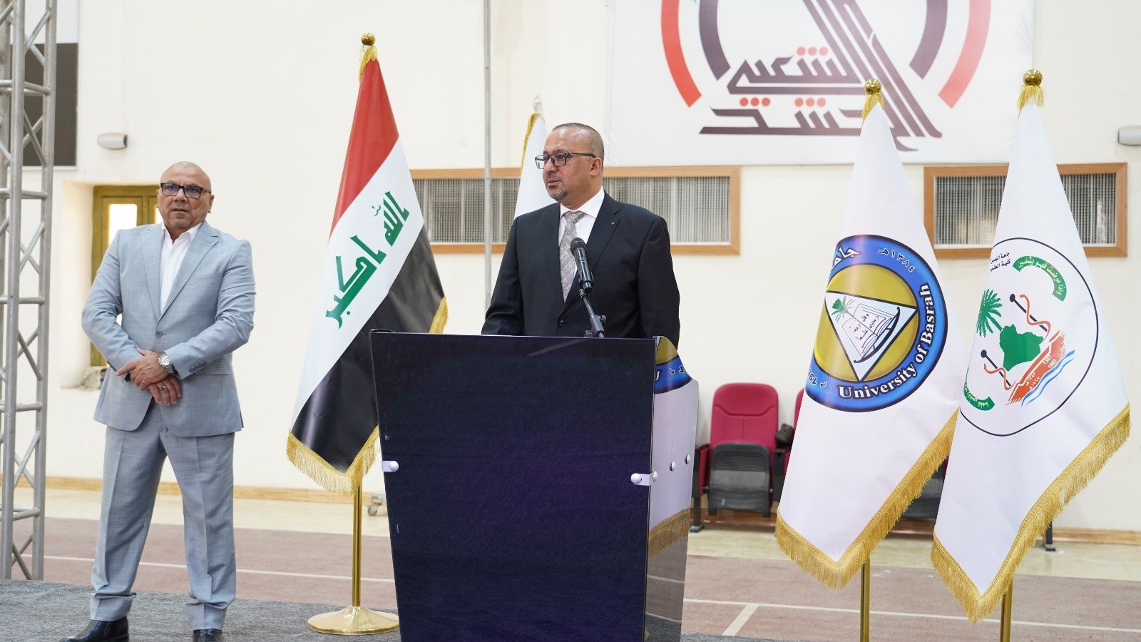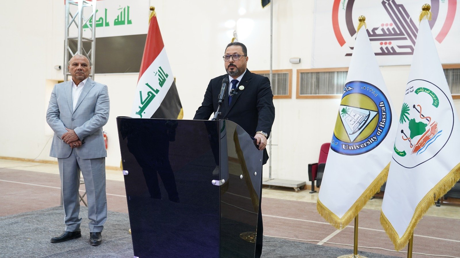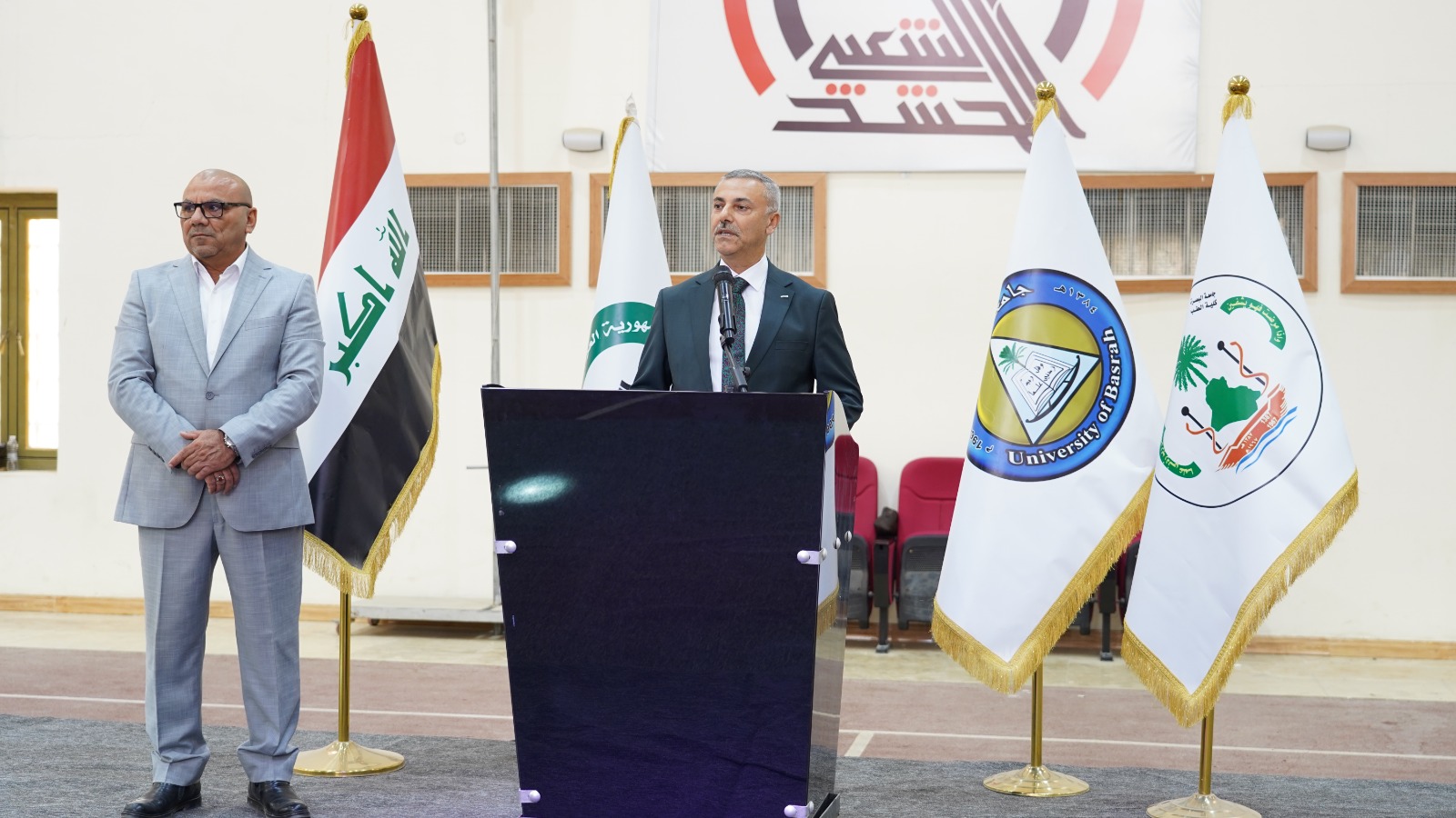 اقامت كلية الطب جامعة البصرة حفل مراسم ترديد القسم الطبي للطلبة الخريجين للعام الدراسي 2024_2025 بحضور مستشار وزير التعليم العالي والبحث العلمي الدكتور علاء عبد الحسن عطية و السيد رئيس جامعة البصرة الاستاذ الدكتور مهند جواد كاظم ومساعده وعميد كلية الطب الاستاذ الدكتور نوفل علي المبار ك ونقيب أطباء البصرة الدكتور وسام محمد علي الرديني ومدير عام دائرة صحة البصرة الدكتور عباس التميمي ومساعد رئيس جامعة البصرة للشؤون العلمية الدكتور حيدر خزعل ومدير قسم الاعلام والاتصال الحكومي الدكتور حيدر عبد الامير يوم الاربعاء 1 / 10 / 2025. والتي تقيمها الكلية سنوياً لترديد القسم الطبي للطلبة الخريجين الدورة 53 ( دورة التميز والابداع ) .كما شارك ايضاً في الحفل جمعٌ من أساتذة الكلية و معاوني العميد و رؤساء الفروع العلمية في الكلية ، و بحضور عوائل الطلبة الخريجين.