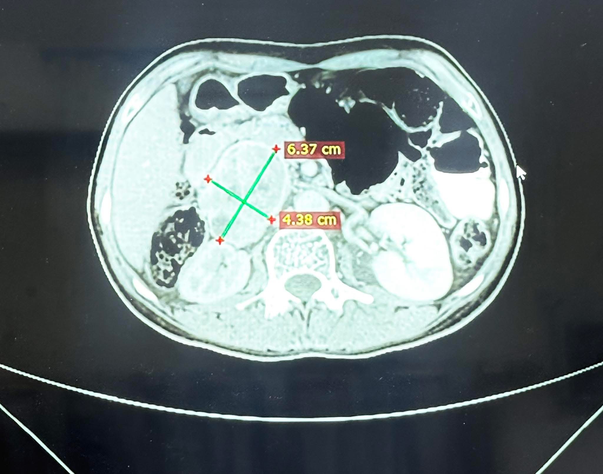 ويُعد هذا الورم أكبر ورم كظري يفرز هورمون الادرينالين تم التعامل معه من حيث الحجم.