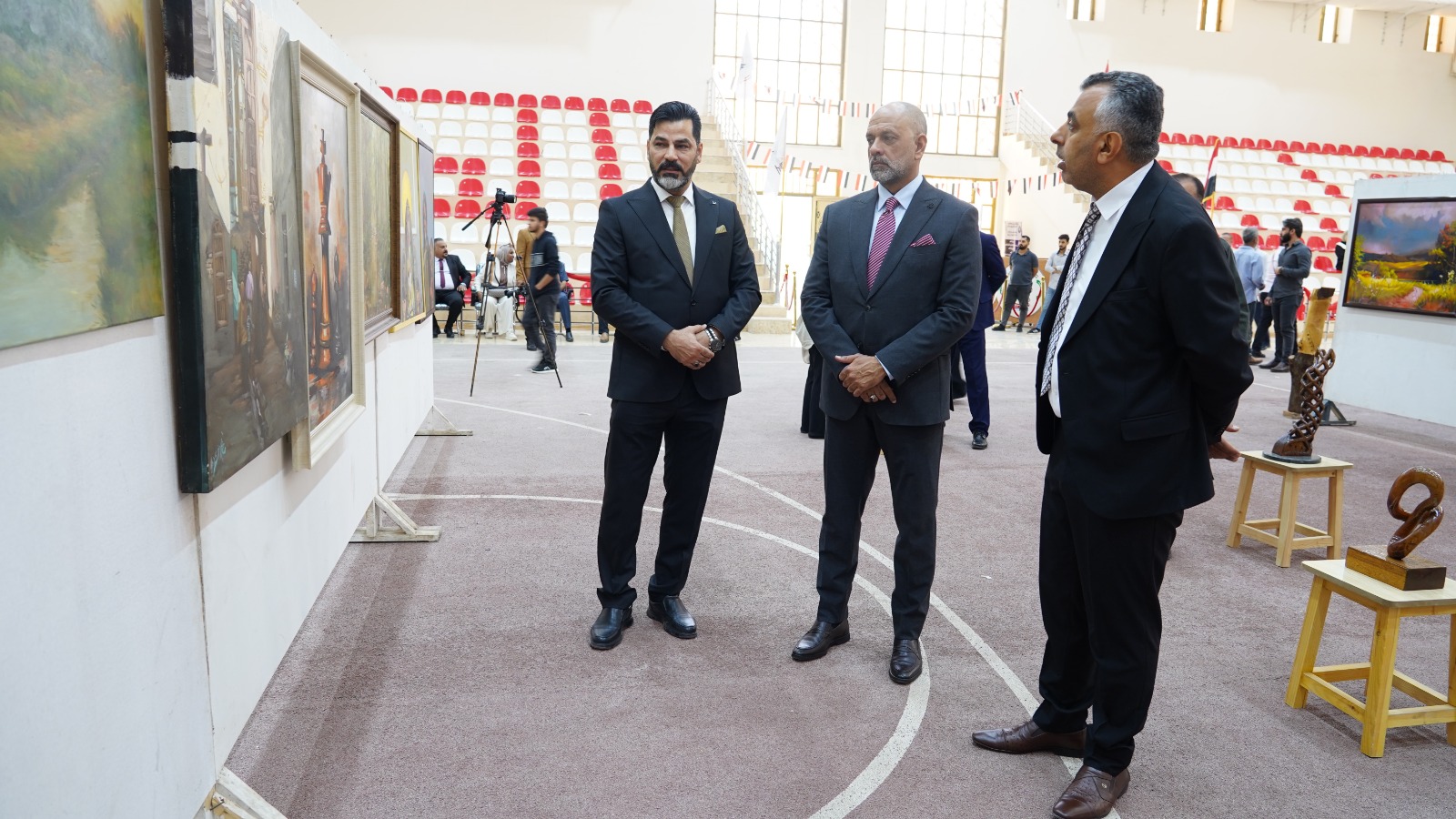 افتتح المعرض الفني الممثل عن جهاز الاشراف والتقويم العلمي الاستاذ احمد عبدالجبار حسين والأستاذ زيد علي حسين