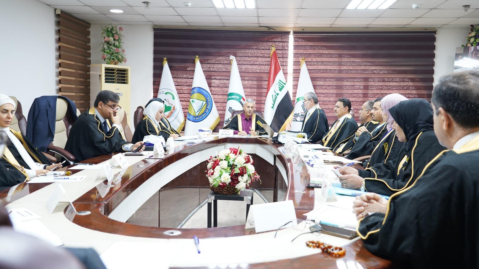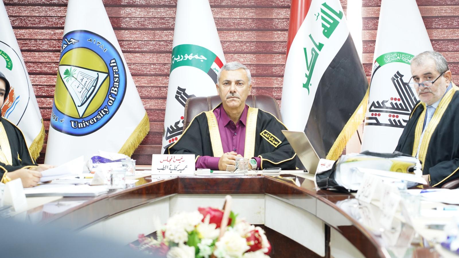 عقد مجلس كلية الطب بجامعة البصرة جلسته الرابعة برئاسة السيد عميد الكلية الأستاذ الدكتور نوفل علي المبارك وبحضور السادة معاوني العميد والسادة أعضاء المجلس كافة