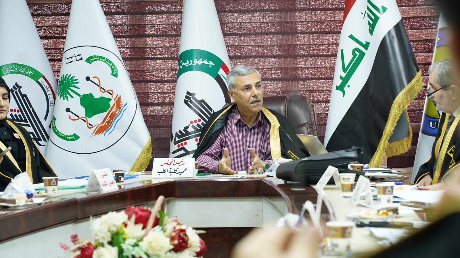 عقد مجلس كلية الطب بجامعة البصرة جلسته الدورية برئاسة السيد عميد الكلية الأستاذ الدكتور نوفل علي المبارك وبحضور السادة معاوني العميد والسادة أعضاء المجلس كافة.